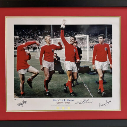 This premium presentation features a professionally signed photo mounted in a sleek black and silver frame, complete with a descriptive plaque and one high-quality action photo — creating a stunning centrepiece for any memorabilia collection.
