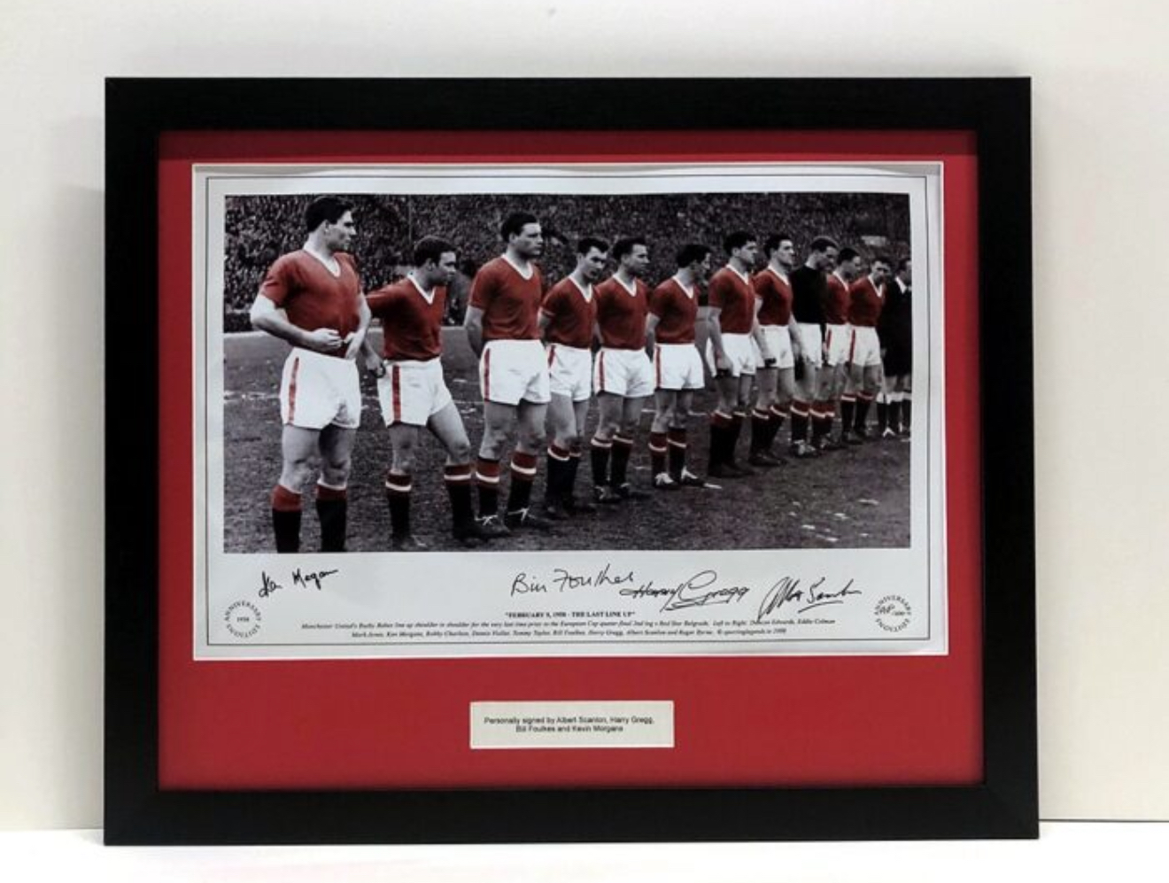 ✔️ Personally signed by Harry Gregg, Eddie Scanlon, Bill Foulkes & Kenny Morgans